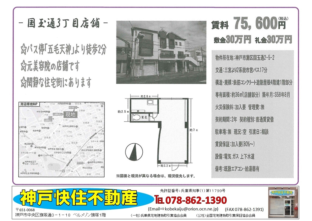 〒651-0068 神戸市中央区旗塚通3-1-18 ベルメゾン旗塚1F